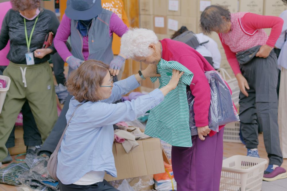 이번 활동에는 포항 지역 자원봉사자분들 부터, 서울에서 먼 길을 달려와 함께해주신 분들도 있었습니다. 자원봉사자들은 피스윈즈와 함께 이재민 한 분 한 분의 눈을 마주치며, 꼭 맞는 옷을 함께 고르고 따뜻한 마음을 나눴습니다.