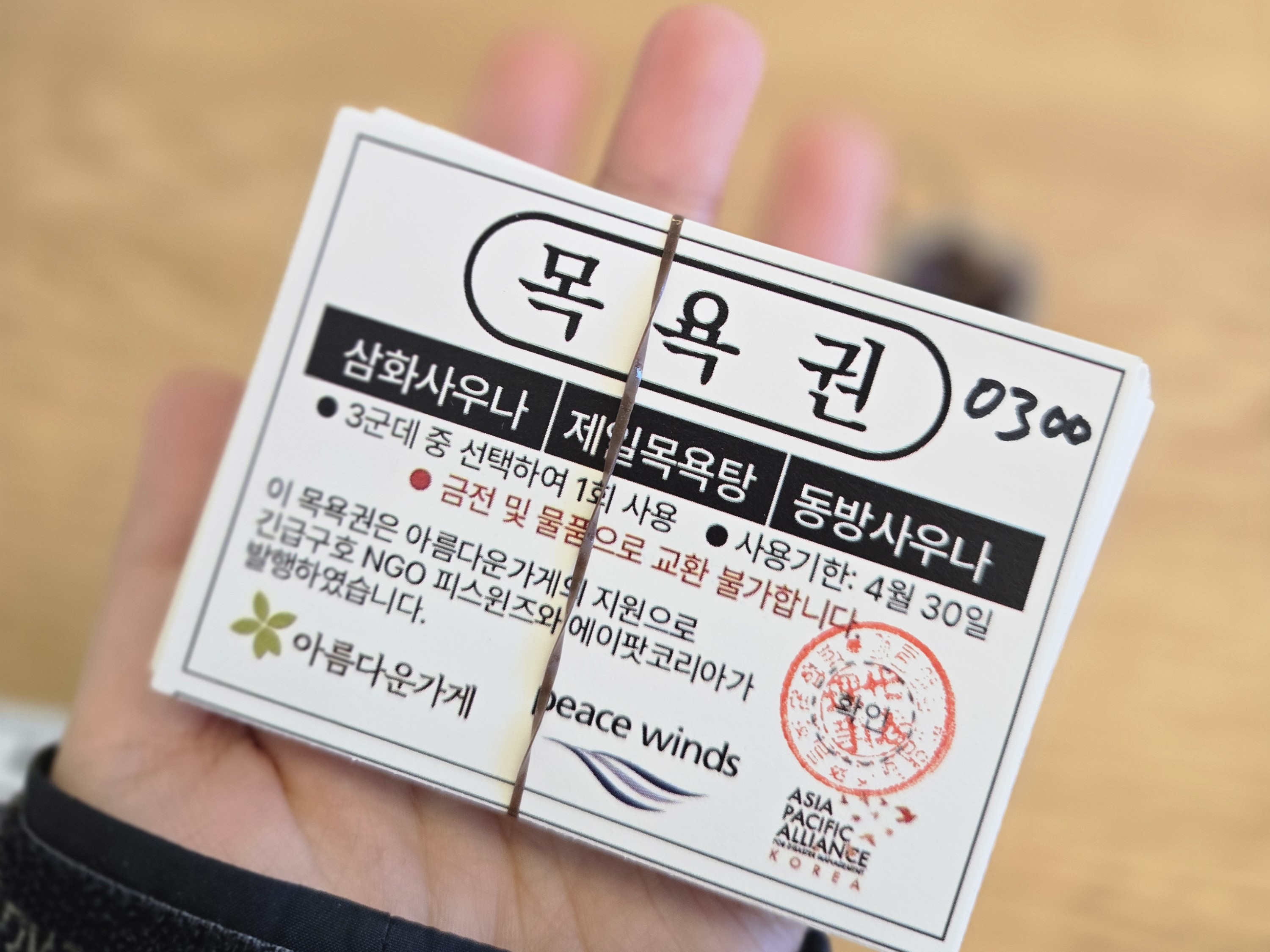 ♨지난 4월 초 배부한 목욕권은 5월 초까지 누적 1,100명 이상의 이재민분들께서 이용해 주셨습니다. |