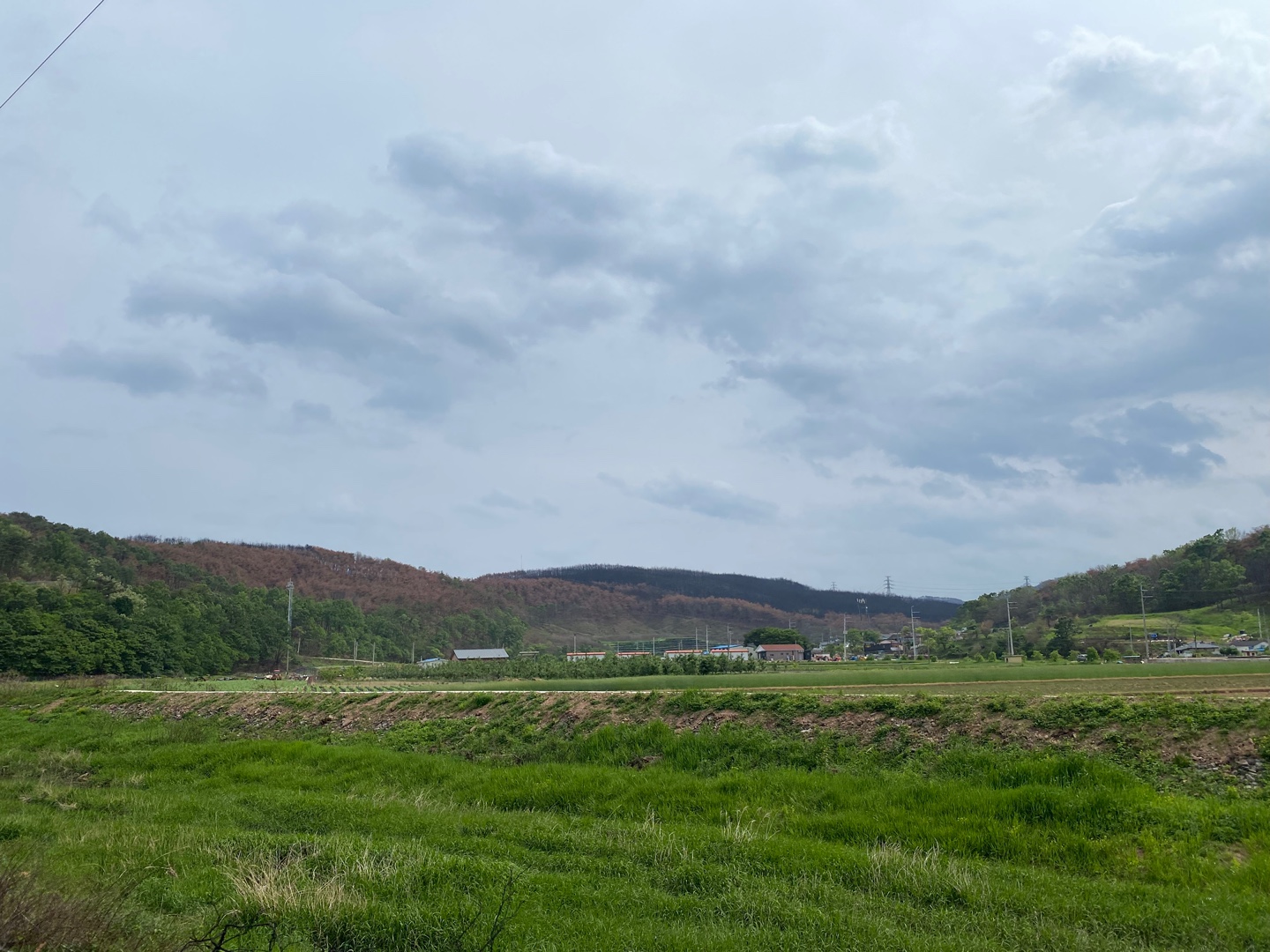영덕군에 가까워질수록 바다 내음이 스며들기 시작했고, 동시에 갈색으로 바싹 말라 죽은 나무들로 뒤덮인 산들이 눈에 들어왔습니다. |