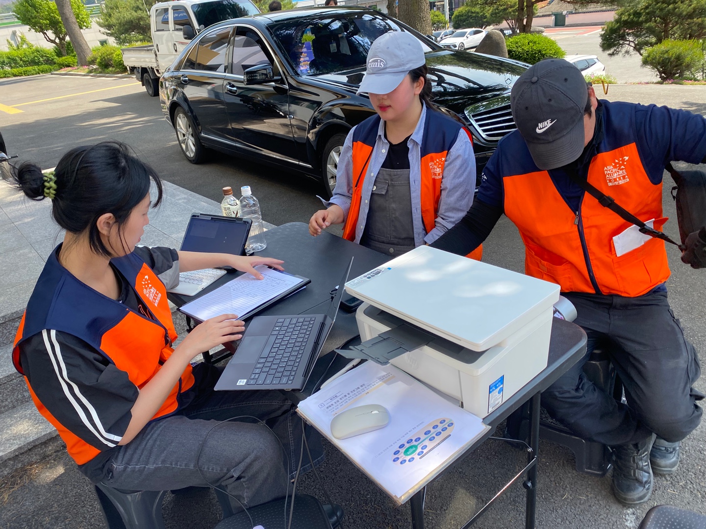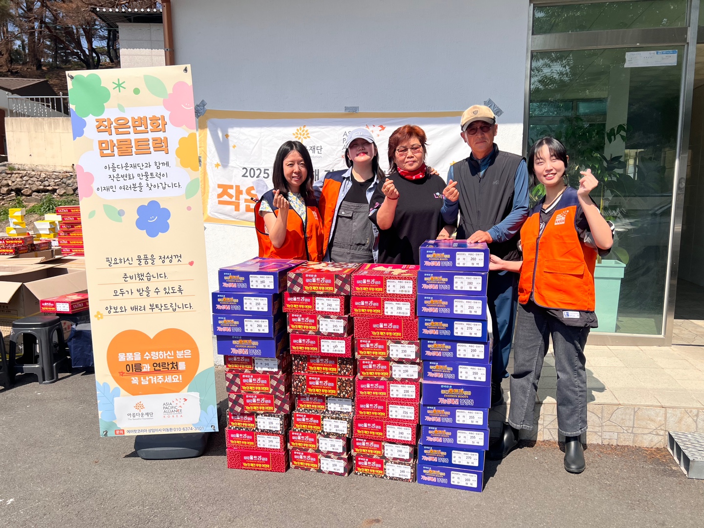 이재민들을 위해 매일같이 힘쓰고 계신 이장님들과는, 산불이 발생했을 때부터 꾸준히 우리 직원이랑 연락을 주고받으며 서로에 대한 이해를 쌓아왔기에, 지금까지도 긴 호흡의 관계를 이어갈 수 있는 것 같습니다. 서로 따뜻한 미소로 인사를 나누는 순간, 현장의 분위기는 한층 더 포근하게 느껴졌습니다.