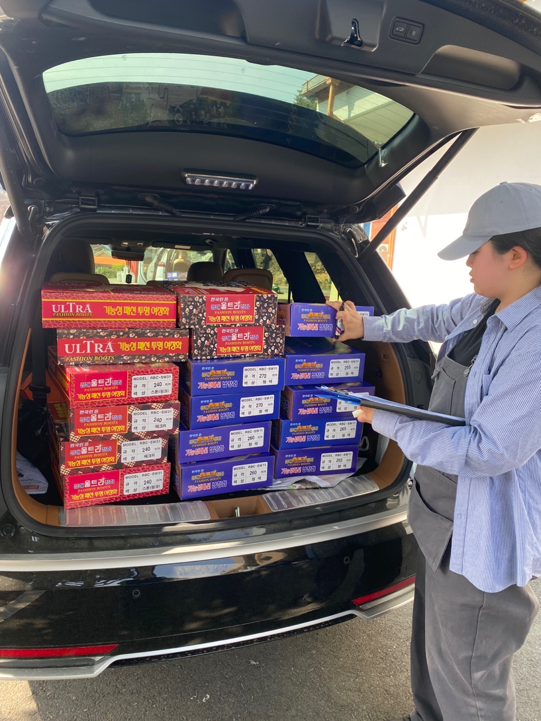 얼마 전 “작은변화 만물트럭” 사업 당시, 이재민분들께 직접 받아둔 신발 사이즈 명단을 보면서, 각 신발 상자에 이름을 하나하나 적어 넣었습니다. 그리고 마을 단위로 묶어 12곳에 이장님이나 대피소 대표분들께 전달해드렸습니다! |