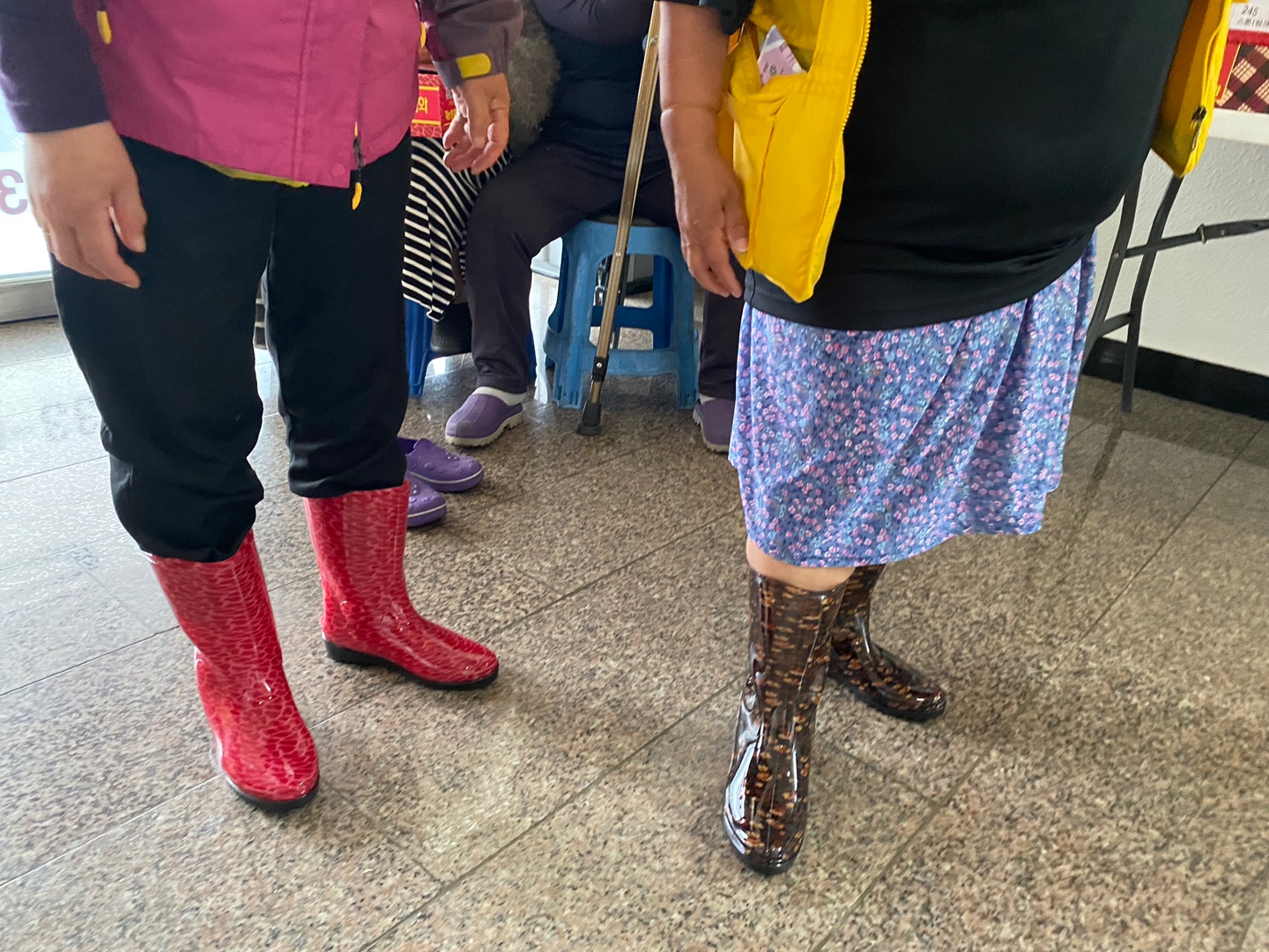 모텔 입구에 도착하자 몇명 이재민분들께서 환한 미소로 저희를 반겨주셨고, 준비해 간 장화를 보시며 “어머, 예쁘다~” 하고 기뻐해주셨습니다.