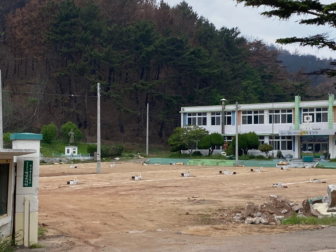 앞으로 임시주택이 들어설 예정인 폐교 운동장도 볼 수 있었습니다. 마침 추첨을 통해 배정된 부지가 정해졌고, 5월 말까지는 건물이 설치될 예정이라고 합니다. |