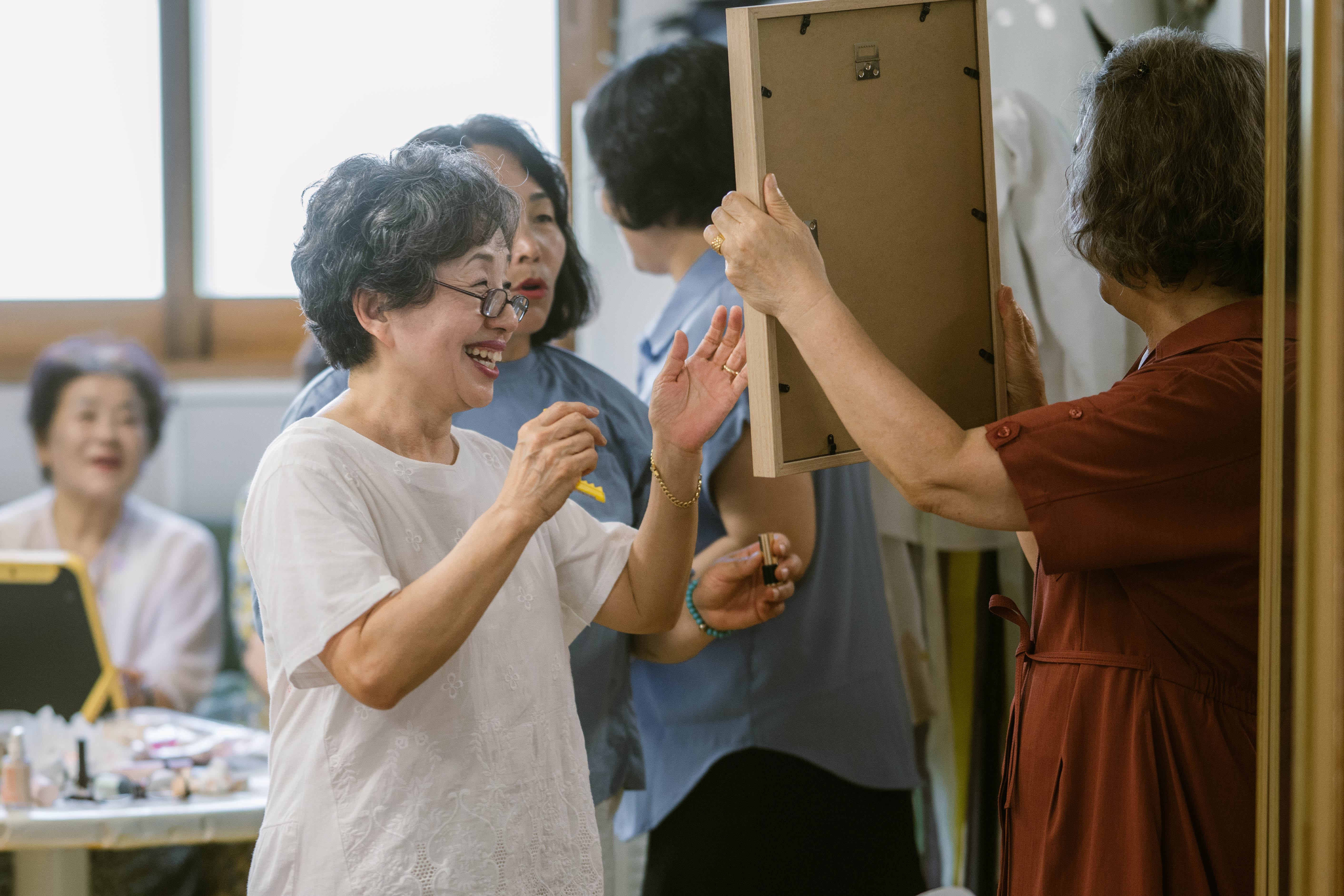 우리는 지역 자원봉사자들(@동네언니협동조합)을 찾아 섭외했습니다. 은퇴한 미용사 선생님, 화장하는 걸 좋아하는 젊은 엄마들, 손재주 좋은 동네언니들. 각자 재능을 꺼내 놓고, 어르신들을 정성껏 꾸며드렸습니다.