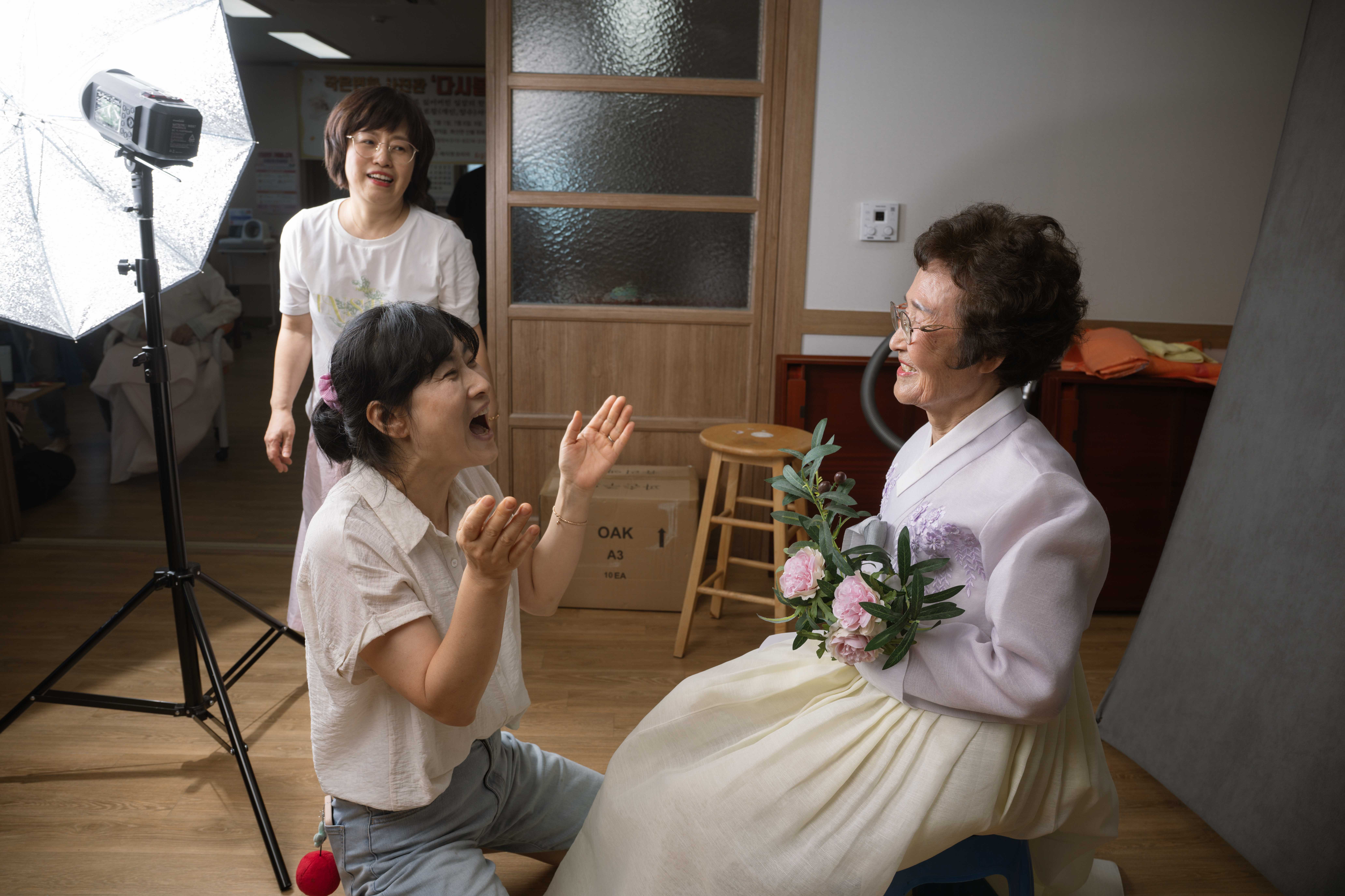 촬영을 준비하며 서로의 옷매무새를 다듬어주고, 사진을 보며 함께 웃고, 포옹하고, 말을 놓습니다. 마을회관에 다시 생기가 돌고, 서로의 마음이 천천히 풀어지는 순간을 우리는 직접 목격했습니다. |