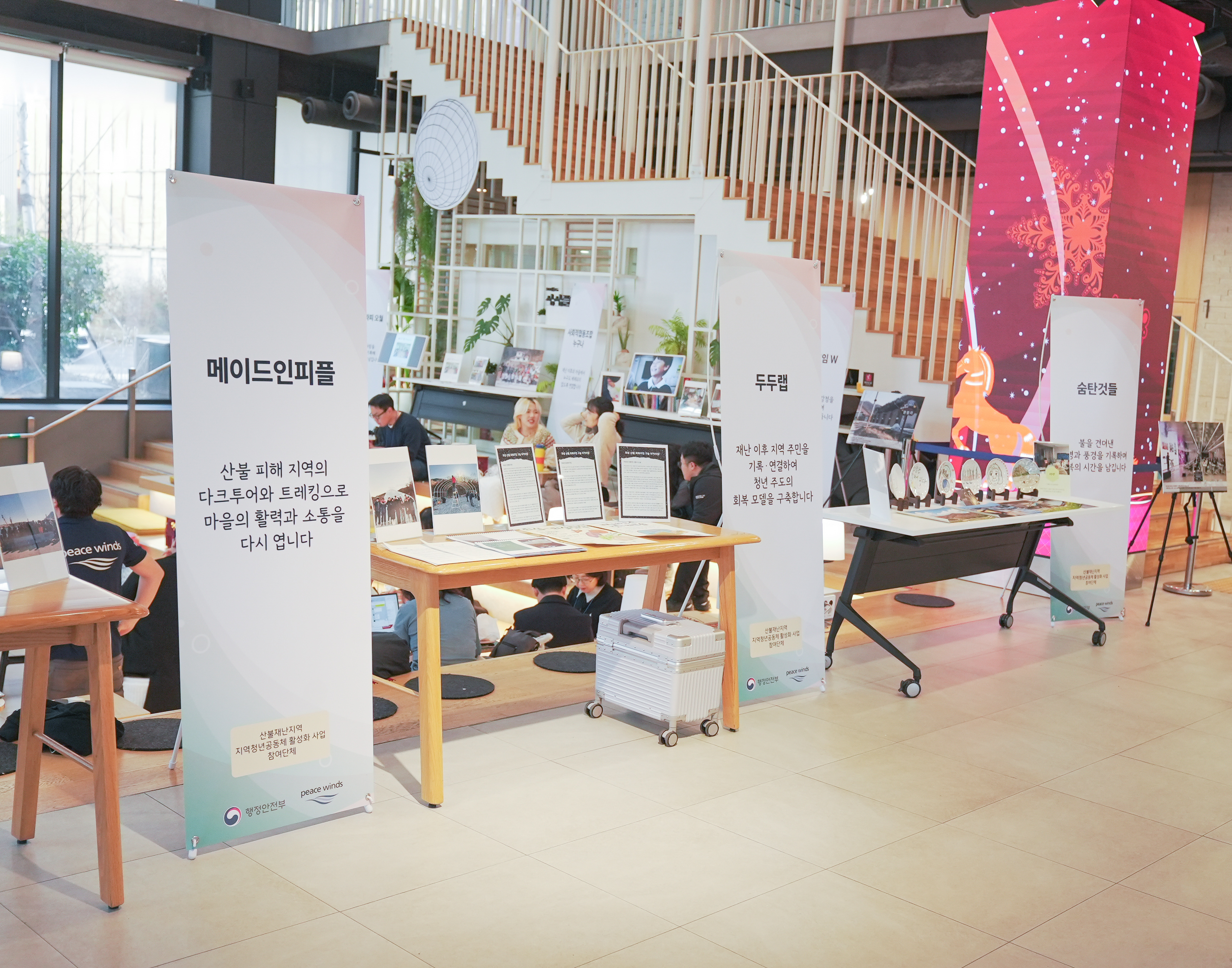 피스윈즈가 올해 10월부터 대한민국 행정안전부와 함께 산불재난지역대상 지역청년공동체 활성화 사업을 운영하고 있던 것, 알고 계셨나요? 한 번이라도 산불재난을 겪었던 지역이라면 대상이 되고, 해당 지역에서 활동하고 있는 지역 정착 청년들을 찾아 지원하는 사업이었는데요. '재난지역 활성화'와 '청년 지원'을 한 번에 이룰 수 있어 저희에겐 의미가 컸었어요.