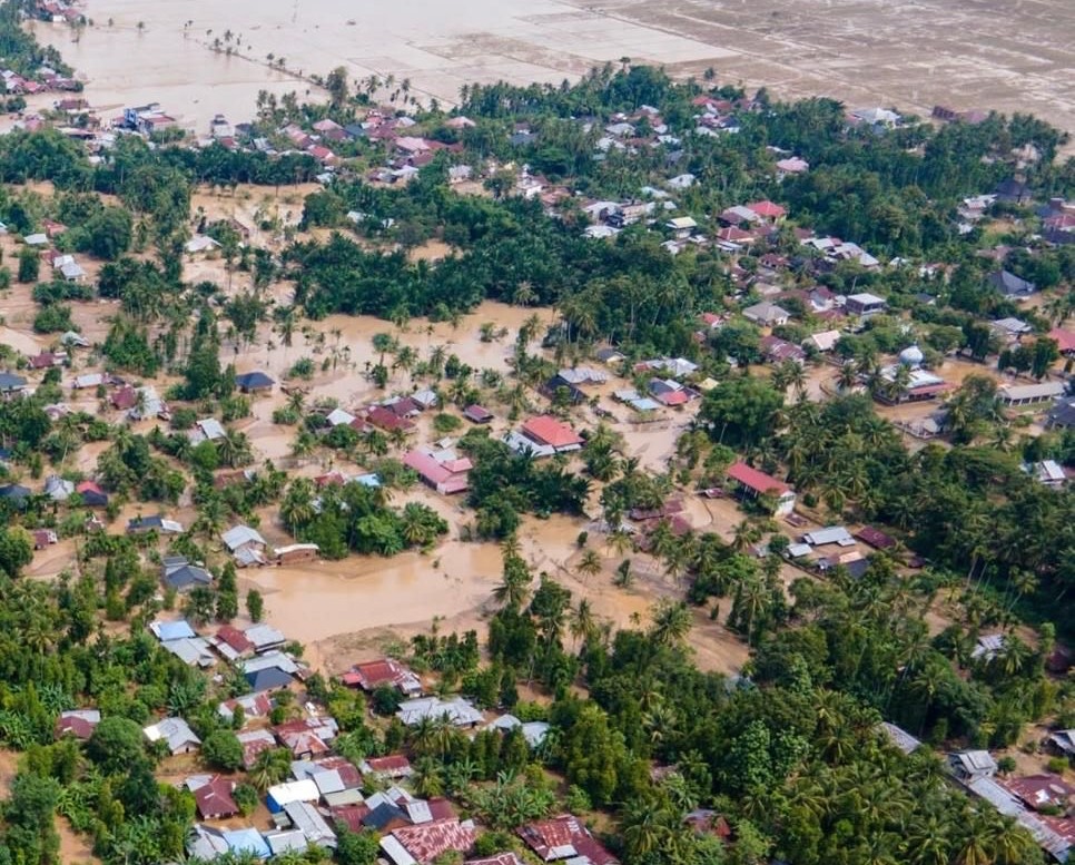 홍수로 침수된 마을 (인도네시아, 2025년 12월)