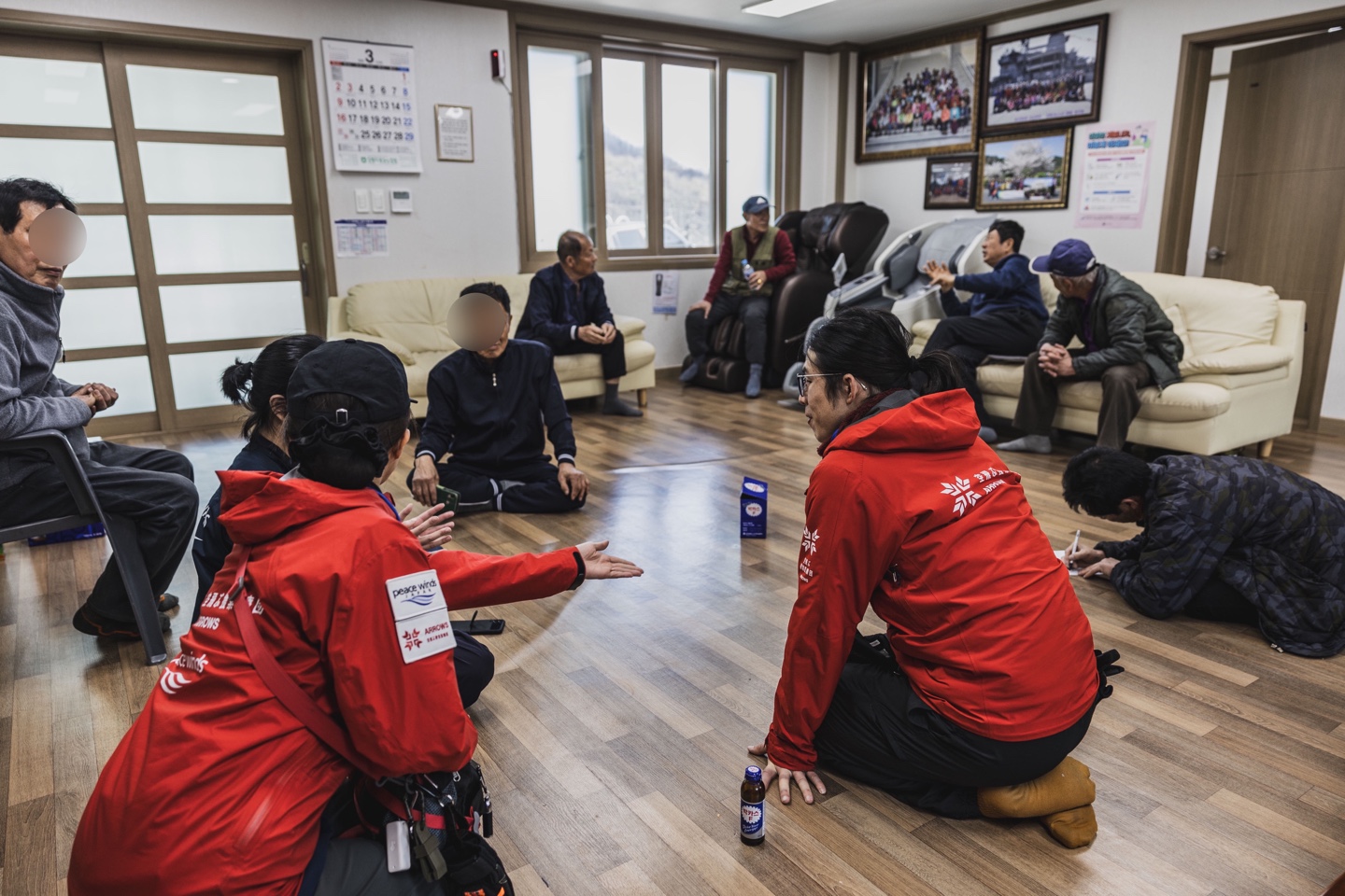 일부는 화재를 피한 마을회관에 자발적으로 머무르고 있으나, 공식 대피소가 아니기 때문에 지원에서 소외될 우려가 있습니다. 피스윈즈는 대형 대피소뿐 아니라 마을회관까지 찾아가, 필요한 지원을 파악하고 전달하고 있습니다.